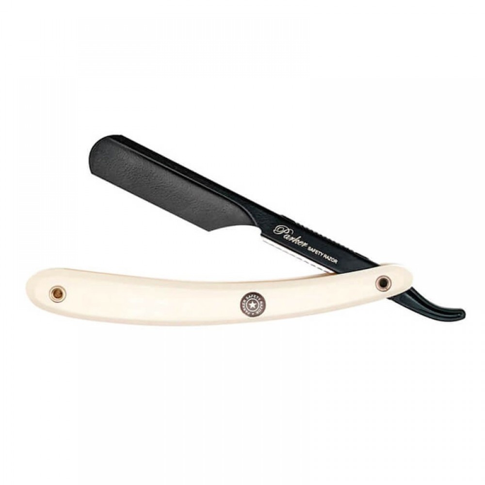 Brzytwa do golenia Parker została wykonana z nadzwyczajną dbałością o każdy detal, ramię z ostrzem zostało wykonane ze stali nierdzewnej w czarnym matowym wykończeniu,a wyprofilowana rękojeść z wysokiej jakości tworzywa sztucznego w białym kolorze.