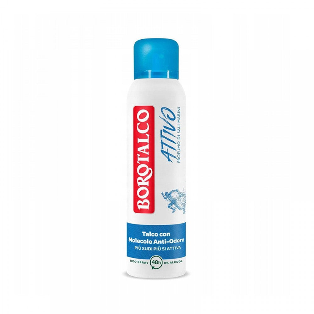 Borotalco Active Deo Spray Sea Salt - antyperspirant w sprayu Sól morska dla aktywnych. Nowa linia dezodorantów Borotalco dla ludzi aktywnych to innowacja w ochronie ciała przed potem i brzydkim zapachem. Formuła z Mikrokapsułkami. Aktywuje się podczas potu i ruchu, uwalniając dodatkowy zapach. Idealny dla Aktywnych Mężczyzn. Zapewnia ochronę i świeżość, niezbędne podczas aktywności fizycznej.