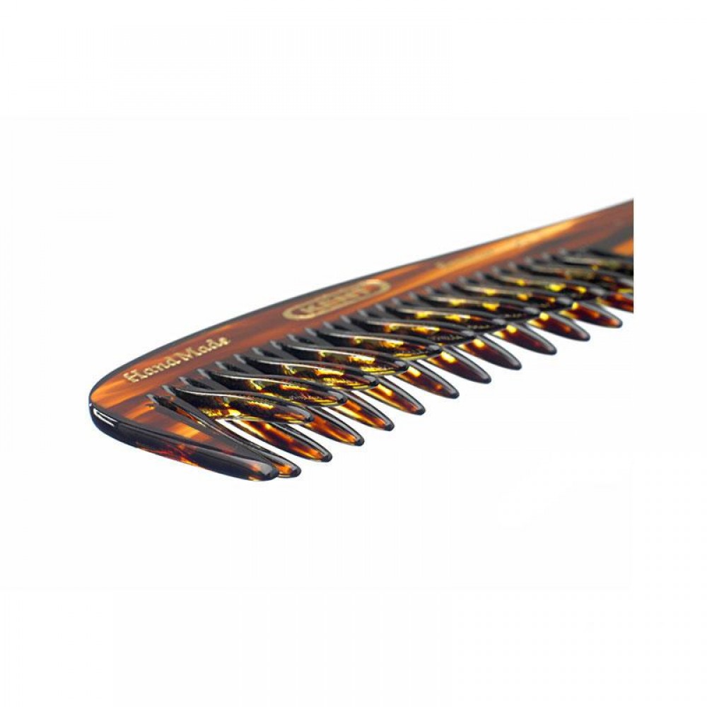 Grzebień Kent A 21T Grzebień KENT 21T serii HANDMADE polecany do rozczesywania włosów splątanych, grubych i mokrych włosów po kąpieli/prysznicu.Grubsze zęby o średnim rozstawie.Rząd zębów krótszych i dłuższych.Grzebień ręcznie wykańczany.