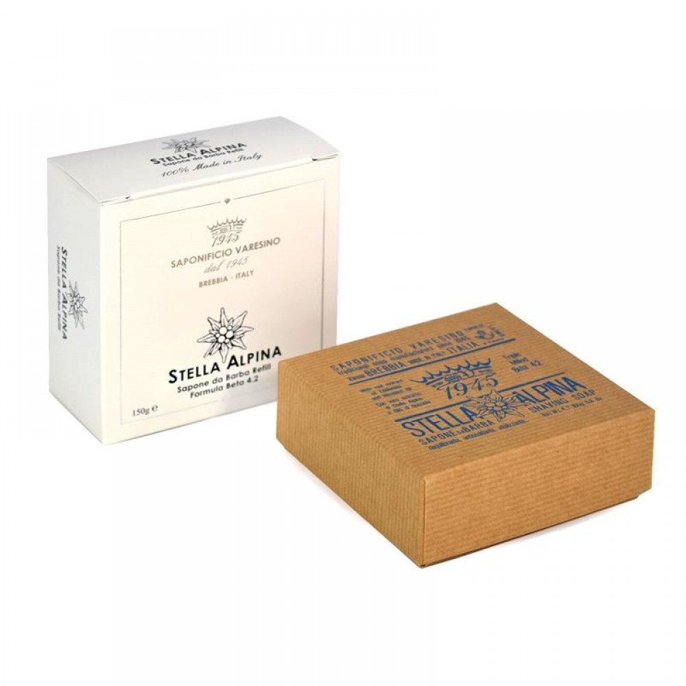 Stella Alpina jest sprzedawane w postaci wkładu do tygla od Saponificio Varesino. Formuła produktu daje puszystą pianę, która zmiękcza zarost pokrywa skórę barierą ochronną w celu lepszego ślizgu ostrza i miękkiego golenia.