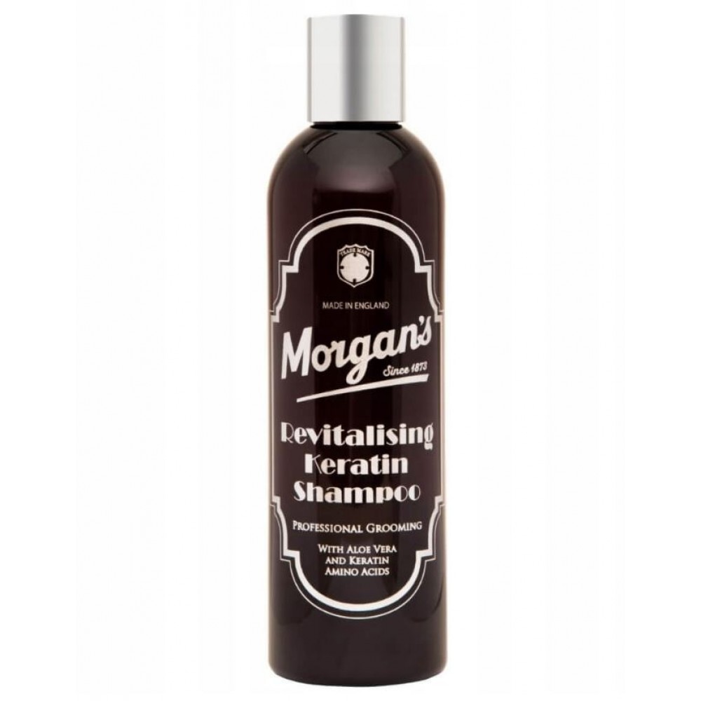 Formula szamponu Morgan's Revitalising Shampoo oparta jest na interakcji naturalnych składników aktywnych. Ekstrakt z aloesu nasyca skórę i włosy wilgocią, witaminami i przeciwutleniaczami. Keratyna – to białko naturalne, z którego składają się włosy człowieka prawie na 90%. Jest niezbędnym materiałem do odbudowy i wzmocnienia struktury włosów. Panthenol łagodzi podrażnienia skóry, wspomaga szybkiemu przywróceniu uszkodzonych tkanek i poprawia elastyczność. Aminokwasy przywracają naturalny połysk i siłę włosom suchym i łamliwym.