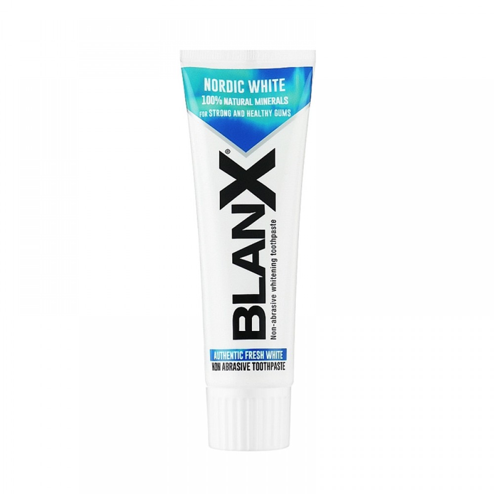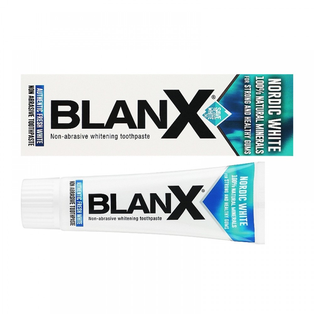 Pierwsza pasta do zębów BlanX Nordic White, która dzięki kompozycji 100% naturalnych minerałów o działaniu łagodzącym i regenerującym, dba o biel zębów i zdrowe dziąsła. Wulkaniczne pochodzenie zapewnia skandynawskim minerałom wyjątkowe właściwości wchłaniające i wybielające. Nowy, wyjątkowy smak zapewniający długotrwałą świeżość.
