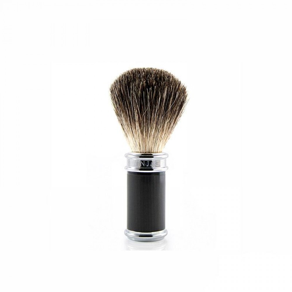 Połączenie 100 % czystego włosia borsuka Pure Badger. Główka pędzla mechanicznie wiązana, a końcówki przycinane dla uzyskania pożądanego kształtu. Chromowana rączka   wykończona antypoślizgową, frezowaną gumą  , co zapewnia lepszą przyczepność. Stylowy klasyczny design umili Twoje golenie.