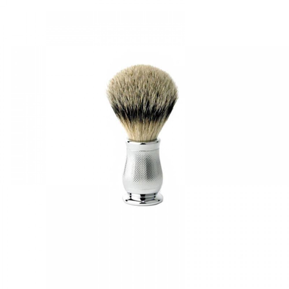 Pędzel robiony ręcznie z kolekcji Chatsworth Metal. Klasyczny, luksusowy pędzel do golenia z włosia borsuka ręcznie formowanego należącego do najwyższej kategorii jakościowej best badger. Uchwyt metalowy, karbowany, chromowany.