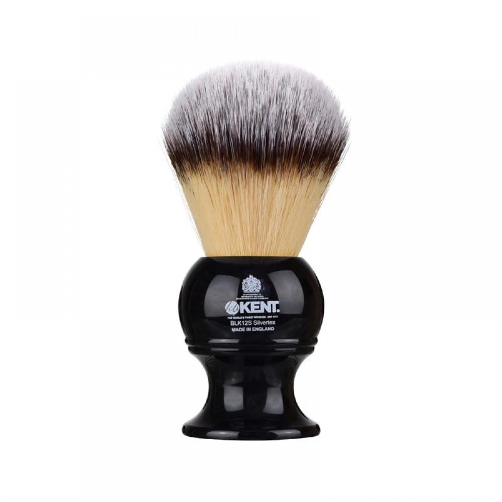 Kent BLK12S — to wysokojakościowy syntetyczny pędzel do golenia w eleganckim czarnym kolorze od renomowanego brytyjskiego producenta.