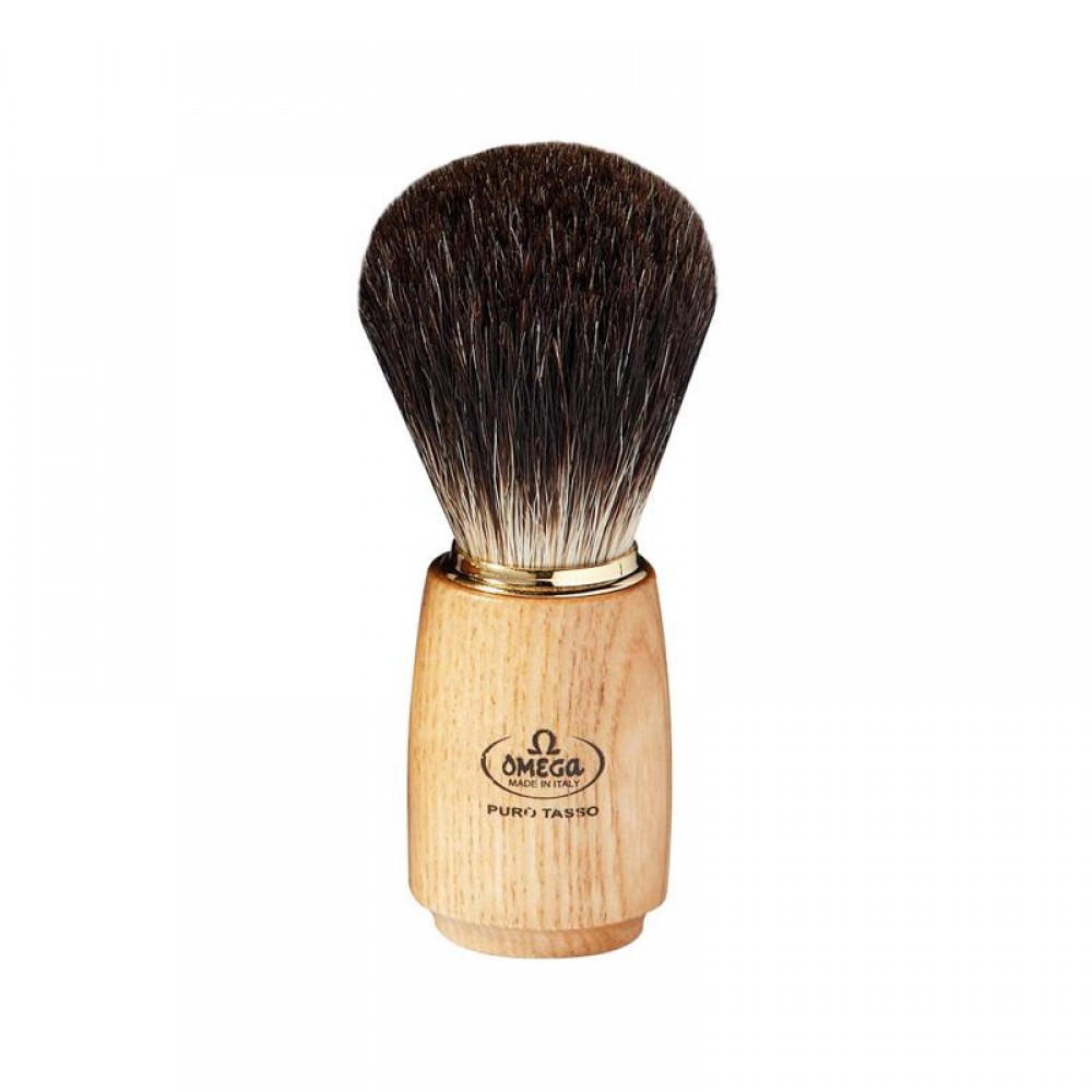 111 mmOmega 6150 — to stylowy i praktyczny pędzel do golenia z drewnianym uchwytem i naturalnym włosiem borsuka od włoskiej marki.