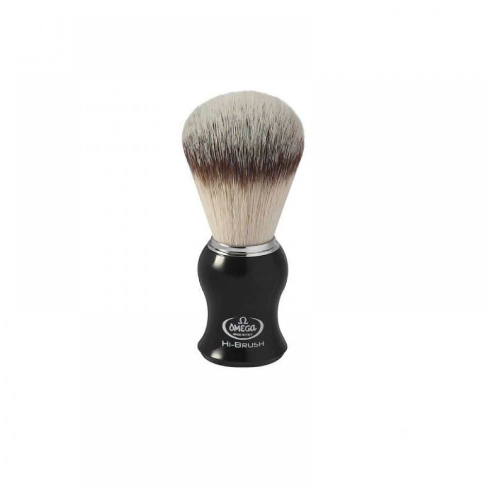Pędzel do golenia Omega Hi-brush 0146206 syntetyczny będzie Twoim niezastąpionym pomocnikiem podczas golenia. To jakościowe narzędzie w przystępnej cenie, które pozwala z łatwością wytworzyć gęstą pianę. Uchwyt wykonany z czarnego plastiku o kształcie dobrze układającym się w dłoni. Na uchwycie wygrawerowane logo producenta. Włosie syntetyczne delikatnie pielęgnuje Twoją cerę. Polecana mężczyznom, którzy mają alergię na naturalne włosie.Prezentowany pędzel - wspaniały pomysł na prezent. Zamawiaj już teraz w naszym sklepie internetowym.