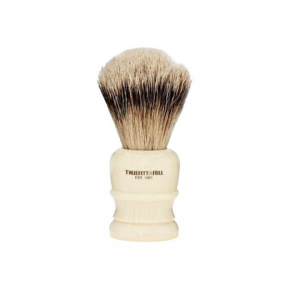 Pędzel do golenia Truefitt & Hill Wellington Faux Ivory Super Badger Brush w białym kolorze. Główka z włosia borsuka, stylowa ergonomiczna wygodna rączka. Dokładnie przemyślany design.