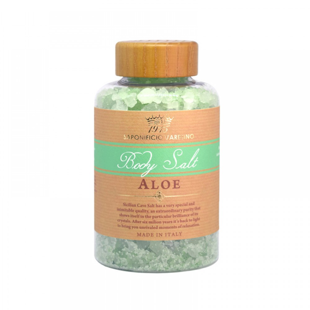 Saponificio Varesino Body Salt Aloe — to naturalna sól kąpielowa renomowanego włoskiego producenta wzbogacona wyciągiem z aloesu.