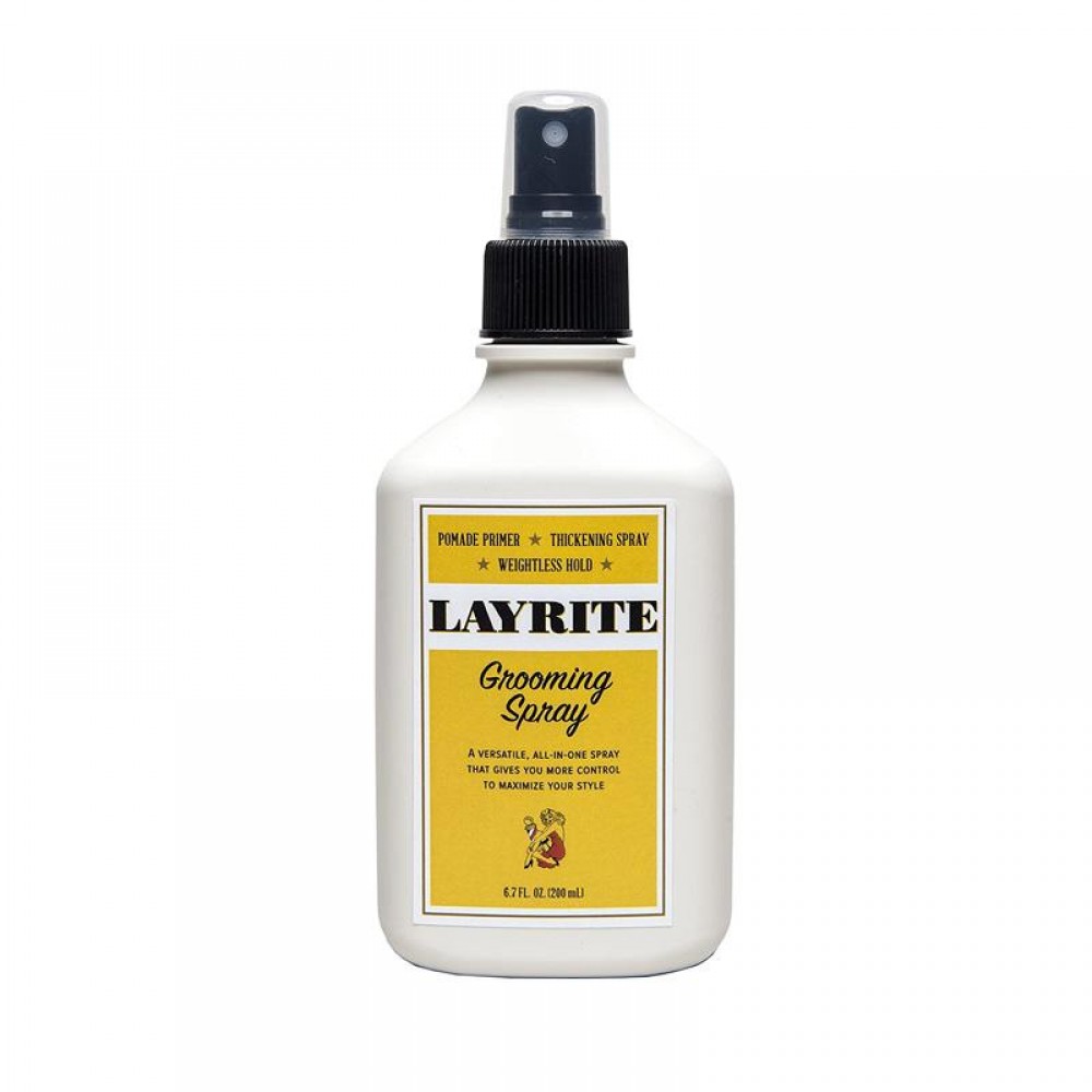 Layrite Grooming — spray amerykańskiej marki o uniwersalnej formule do stylizacji włosów, który jednakowo dobrze sprawdza się na włosach suchych, jak i mokrych, oraz może być dodatkowo używano jako podkład pod mocniejsze produkty do stylizacji.