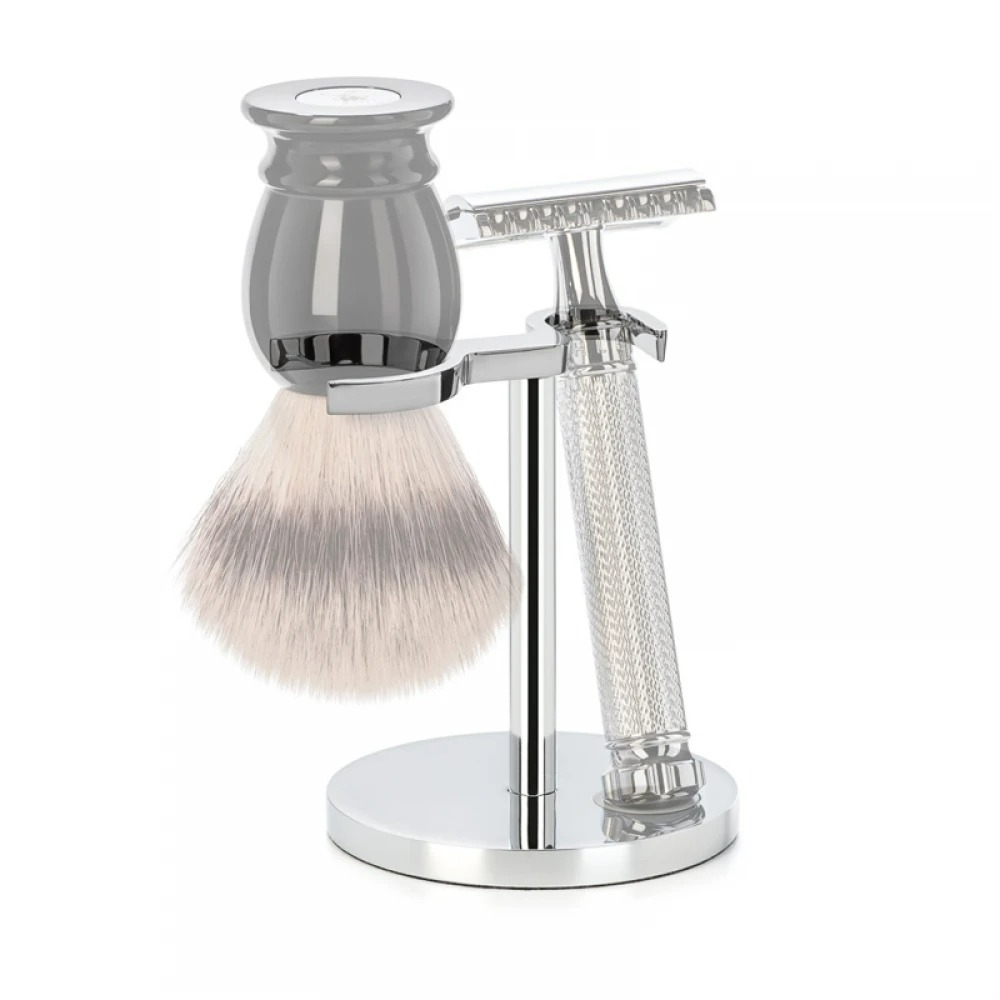 Do eleganckiego, bezpiecznego i higienicznego przechowywania pędzla oraz maszynki do golenia — idealny wybór jako uzupełnienie zestawu MÜHLE lub prezent.