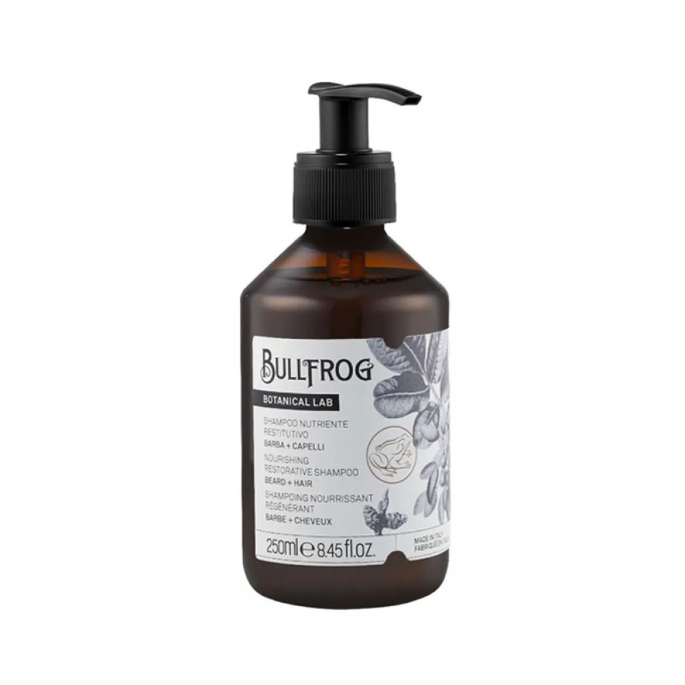 Opis produktu: Szampon do włosów i brody Bullfrog Botanical Lab nourishing restorative shampoo 250ml