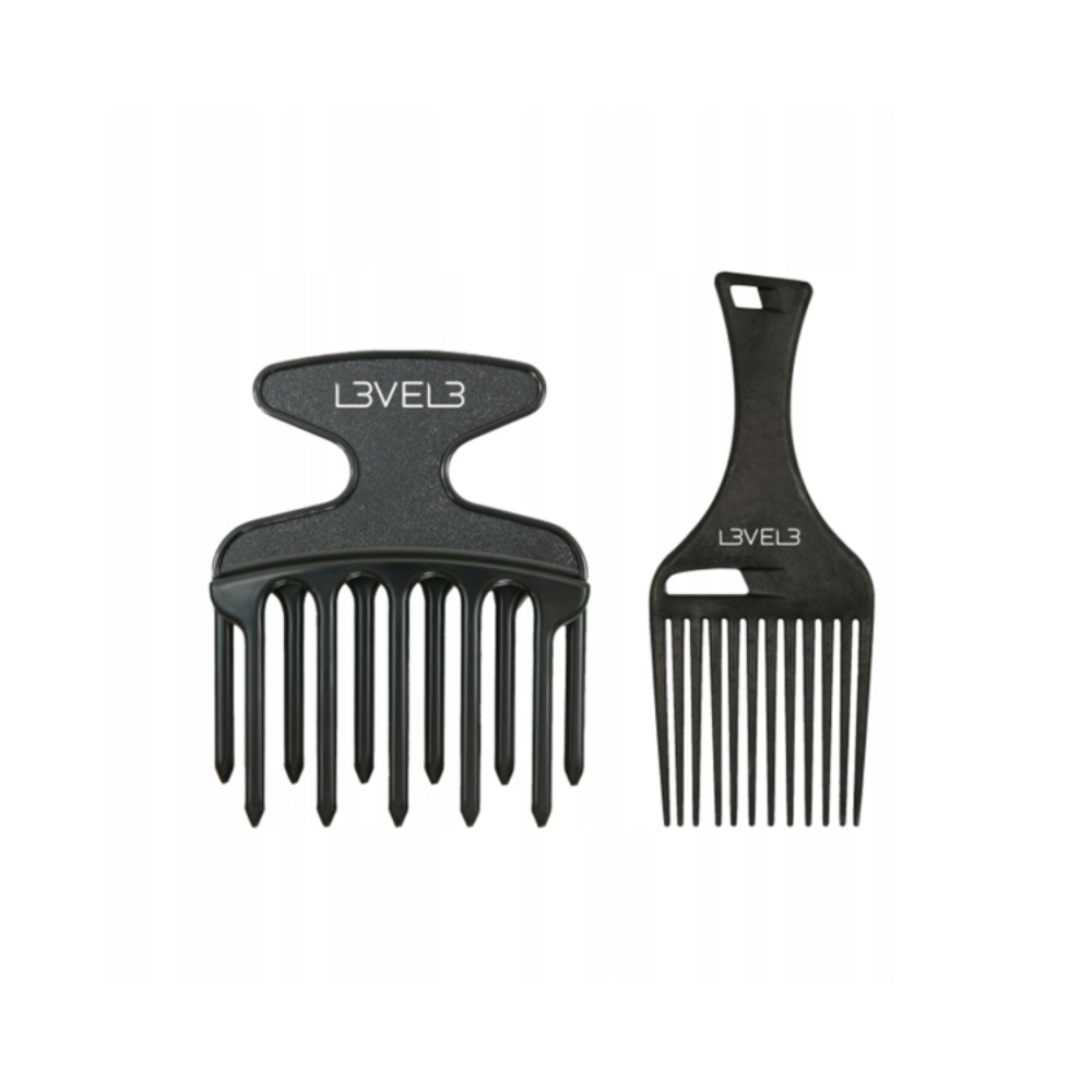Opis produktu: Zestaw grzebieni do włosów L3vel3 Afro Hair Pick Comb Set 2 szt. – profesjonalne grzebienie z żywicy